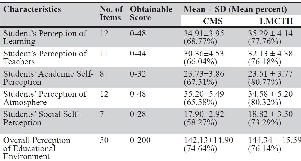 Perception of Educational Environment among Nursing Students of Different Colleges: A Cross- Sectional Study